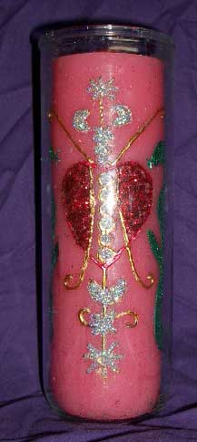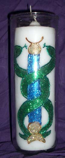 Each spell candle is inscribed with magickal symbols, glittered, and dressed with fine fragrant oils on a seven day pull out candle. The candles are encased in glass and burn for approximately seven days (168 hours) if burned non stop. The seals that are carved onto the candles were created in 1979 by Lady Rhea. I have been creating them for many years now and use them myself. They are very powerful.