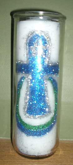 Each spell candle is inscribed with magickal symbols, glittered, and dressed with fine fragrant oils on a seven day pull out candle. The candles are encased in glass and burn for approximately seven days (168 hours). The seals that are carved onto the candles were created in 1979 by Lady Rhea. I have been creating them for many years now and use them myself. They are very powerful.